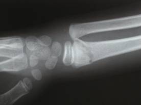 学校で遊んでいてブランコから落ち、転倒した際手をつき負傷。