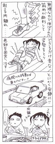 @ とにかく痛みが激しいので、なるべく患部の筋肉を使わずにすむような楽姿勢をとる。