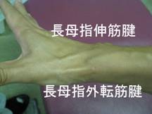 長母指伸筋腱と長母指外転筋腱に圧痛ありドケルバン病(狭窄性腱鞘炎)と診断 |