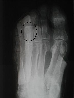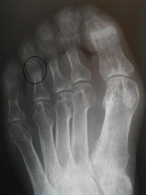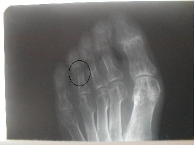 症例4左趾骨骨骨折(第4趾) 47歳 男性 負傷年日 平成11年7月2日 負傷原因 自宅居間で家人が寝ていた足につまずき転倒した際負傷 |