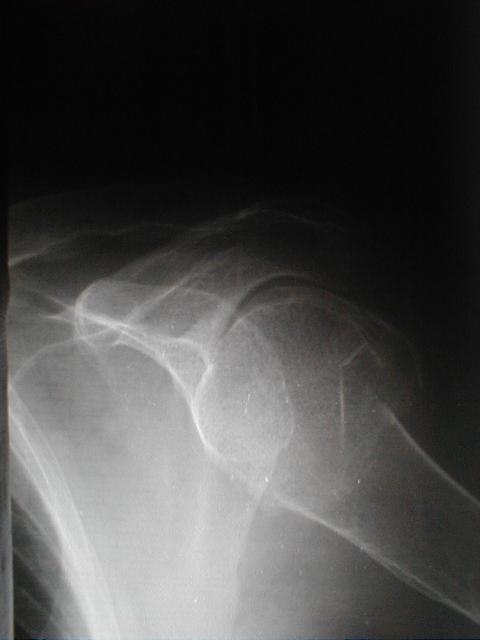 自宅廊下で足元わ滑らし転倒した際、肩から落ち負傷