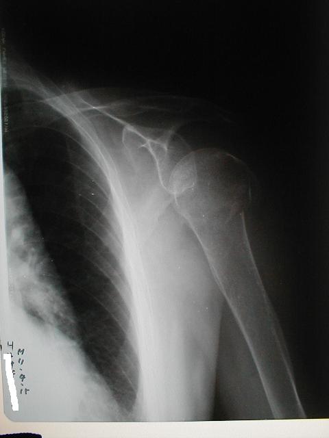 自発痛著明、三角筋の膨隆消失、起居動作困難