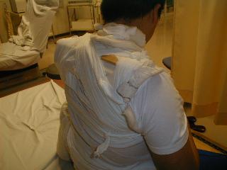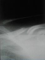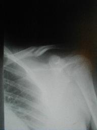 負傷原因 柔道の稽古中に受身をした際に肩より落ち負傷初診時症状 腫脹 疼痛、運動制限、変形 |