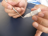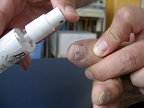 綿棒で爪表面のふき取り