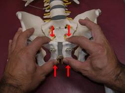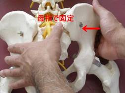 恥骨結合の関節周囲は強靭な靭帯で覆われており動きは感じ取り難い関節ですが、圧を加える方 向で、患者が痛みや違和感を訴えることで検査の確認